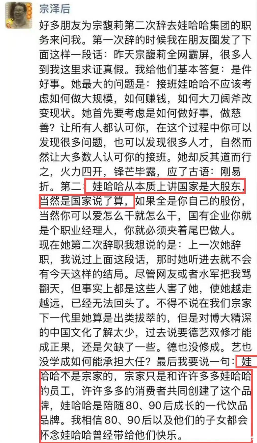 要知道,老宗曾承诺老员工,一辈子都是娃哈哈的人。